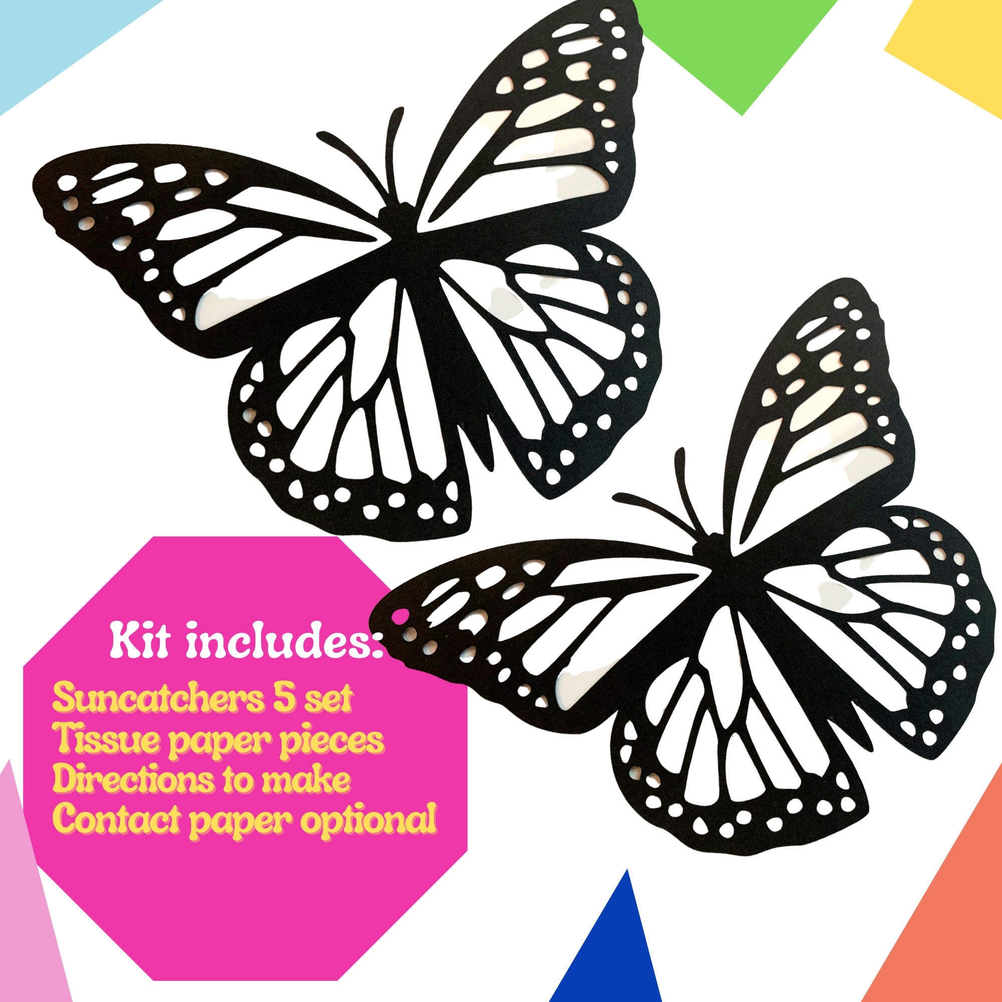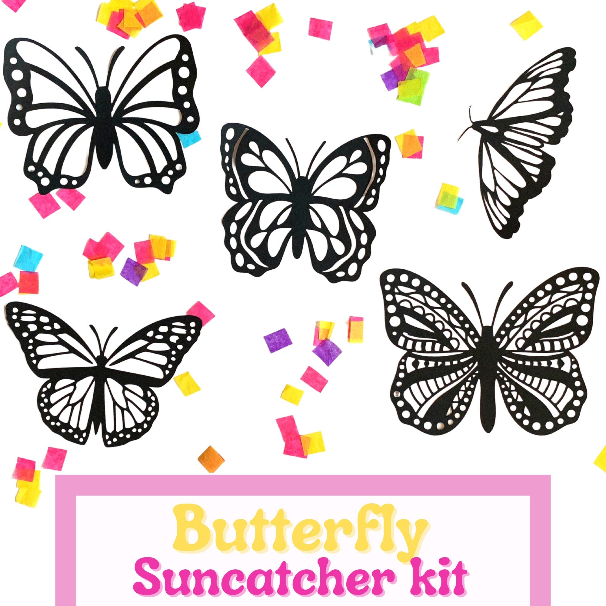 Butterfly Suncatcher KIT SET| Kids Craft Kit| Tissue paper Crafts| Gift For Kids| Stained Glass Craft | Kids Activity Homeschool -
